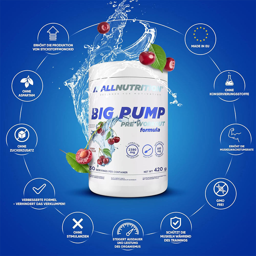ALLNUTRITION BIG PUMP PRE WORKOUT egy edzés előtti formula, amely minden olyan erőnléti edzést végző személynek szól, aki edzés közben , be szeretne durranni anélkül, hogy további stimulációra lenne szüksége. A formula különböző ízekben kapható. Ezenkívül könnyen oldódik vízben, így az edzés előtti ital elkészítése gyors és kényelmes.