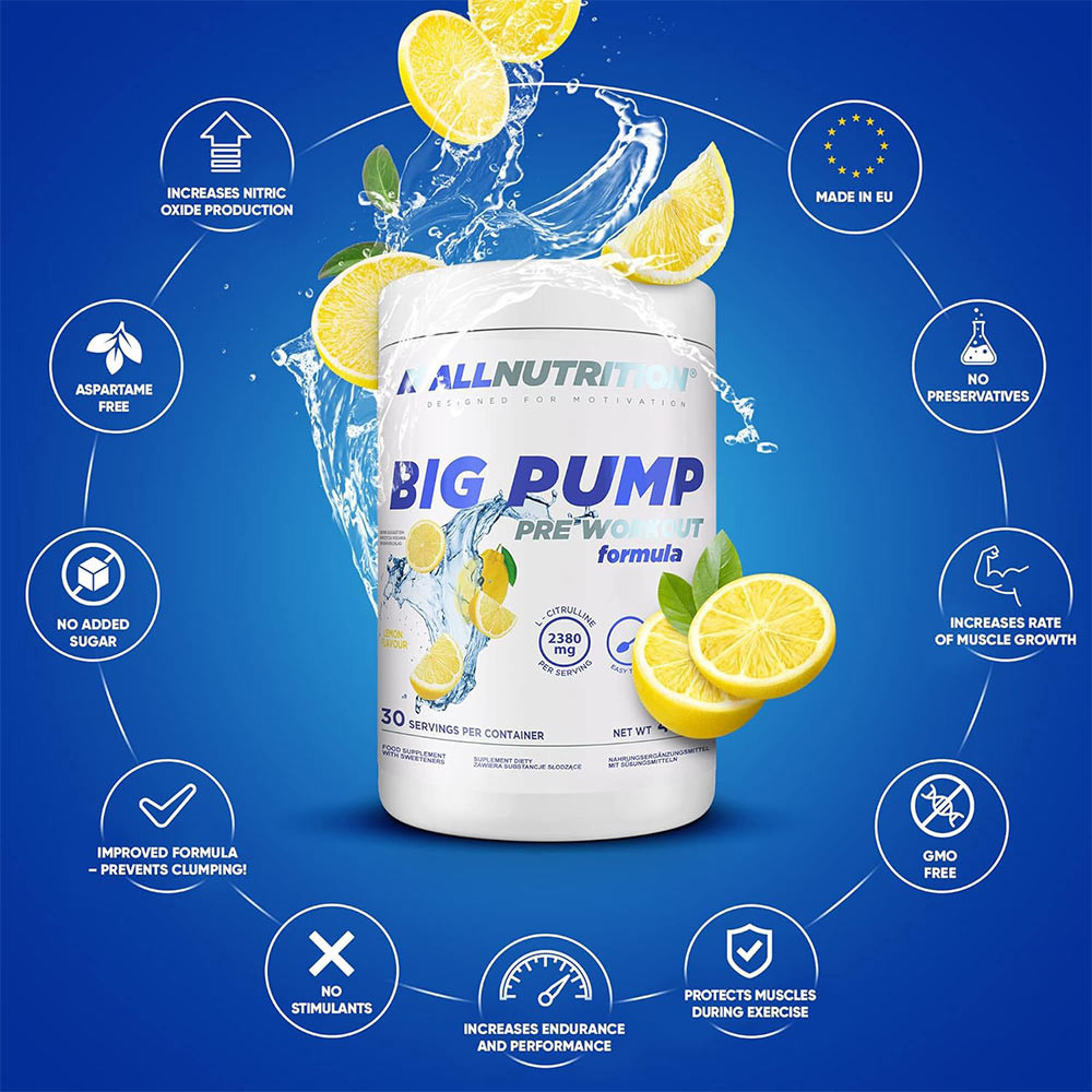 ALLNUTRITION BIG PUMP PRE WORKOUT egy edzés előtti formula, amely minden olyan erőnléti edzést végző személynek szól, aki edzés közben , be szeretne durranni anélkül, hogy további stimulációra lenne szüksége. A formula különböző ízekben kapható. Ezenkívül könnyen oldódik vízben, így az edzés előtti ital elkészítése gyors és kényelmes.