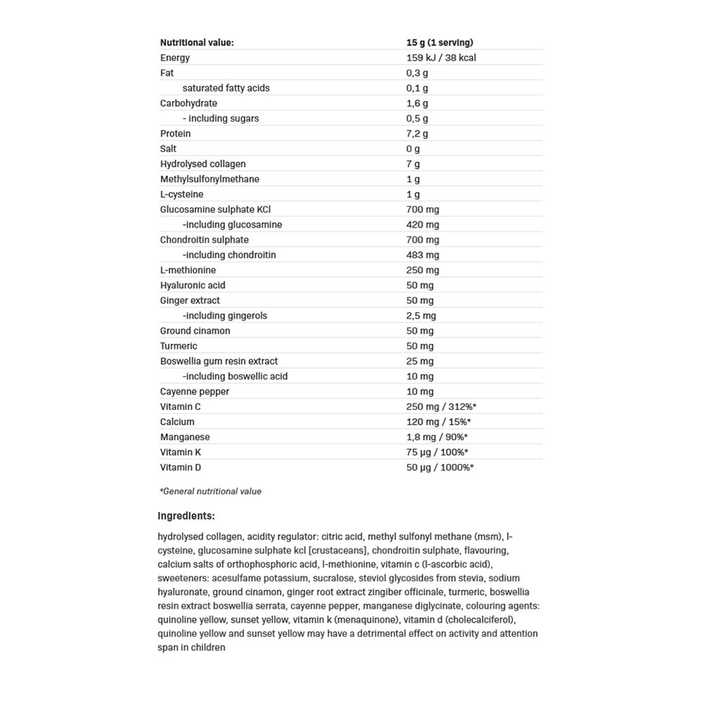 CSONT- ÉS IZOMTÁMOGATÁS Ízületi fájdalmak? Problémák a megfelelő regenerációval? Gyakori sérülések? Akár ezekkel a problémákkal küzd, akár inkább ellensúlyozni szeretné őket - ezt a terméket az Ön számára hozták létre. Egy olyan teljes értékű terméket szerettünk volna elérni, amely szabadalmaztatott formulájának köszönhetően hatékonyan működik és megfelelő megelőzést biztosít!
