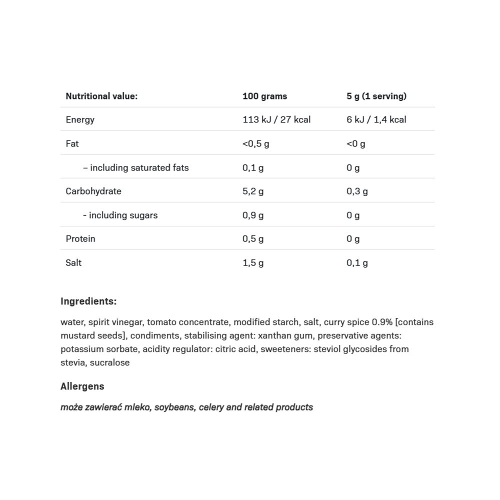 Az ALLNUTRITION CURRY SAUCE egy alacsony kalóriatartalmú szósz, zsiradék és hozzáadott cukor nélkül, ínycsiklandó curry ízzel. Megint rizs csirkével? Adj hozzá szószt és élvezd a kivételes, keleties ízt! Garantáljuk, hogy tökéletes kiegészítője lesz diétás ételeidnek.