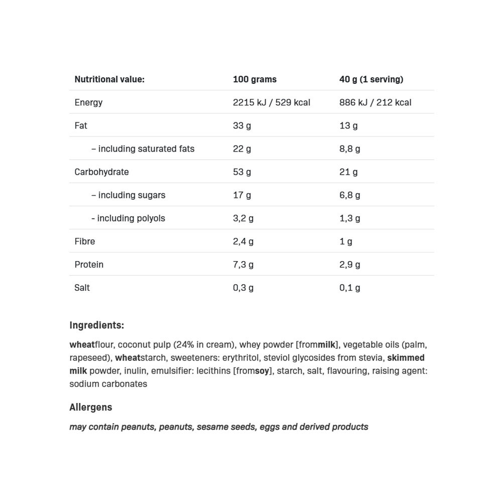 Tejszínkrémmel töltött ostyák (73%). Édesítőszereket tartalmaz. Hozzáadott cukrot nem tartalmaz. Természetesen előforduló cukrokat tartalmaz. A termék bármely összetevőjére való érzékenység (allergia) esetén ne fogyaszd.