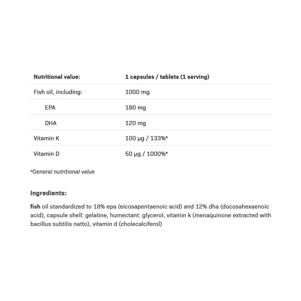 OMEGA 3 K2+D3 ideális azok számára, akiknek fontos az egészséges szív, agy és látás, akik egészséges csontozatot szeretnének fenntartani, akiknek szükségük van az immunrendszer és az izmok támogatására, valamint akik aktív és igényes életmódot folytatnak.