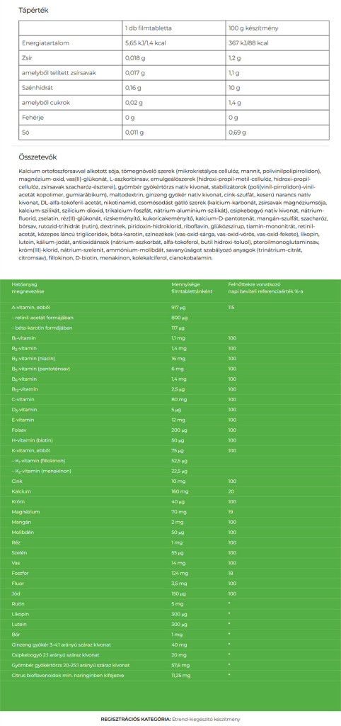 Actival +Herbal filmtabletta komplex étrend-kiegészítő multivitamin, ásványi anyagokat, növényi kivonatokat, rutint, likopint és luteint tartalmazó készítmény.