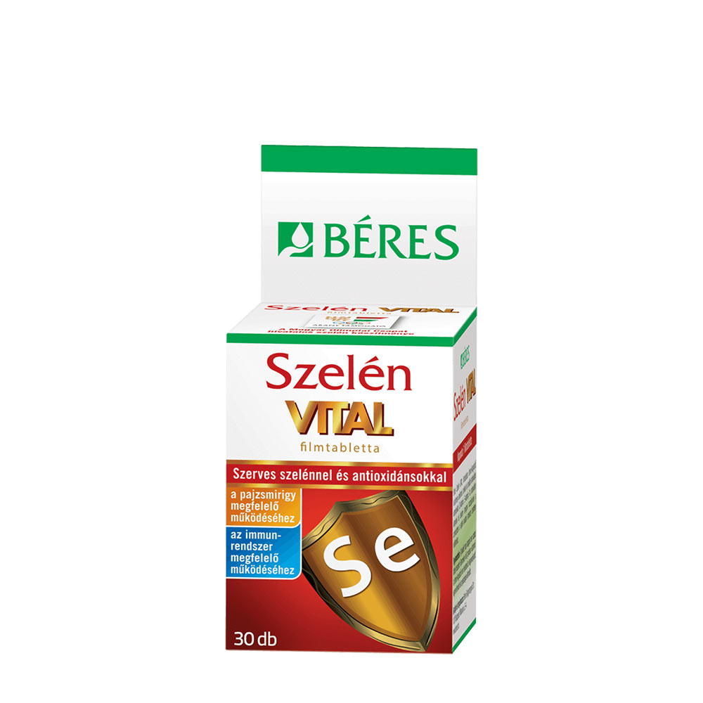 Béres Szelén VITAL filmtabletta étrend-kiegészítő készítmény szelénnel, cinkkel és további antioxidáns vitaminokkal (C-vitamin, E-vitamin).