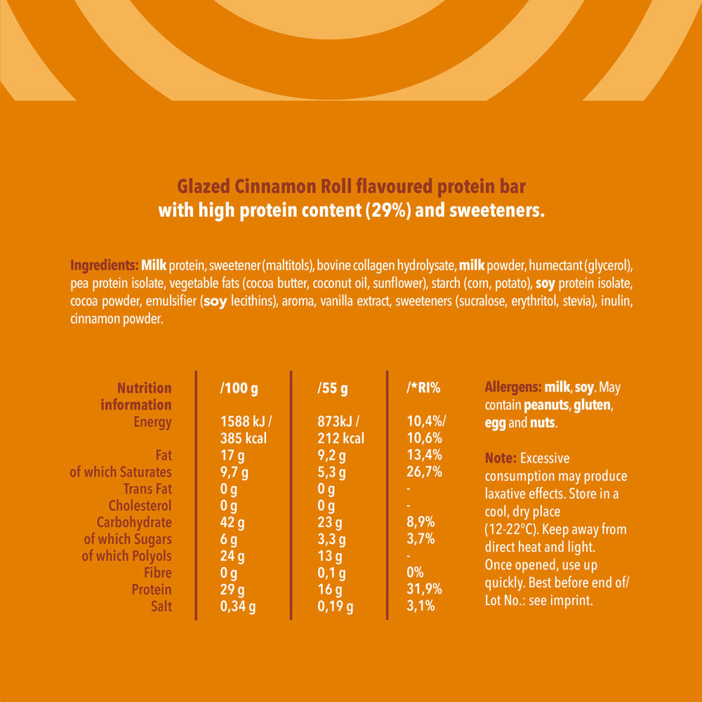 Édes, fűszeres és elképesztően finom! A 16 g fehérjét tartalmazó Glazed Cinnamon Roll Protein Bar a mindennapi jutalmad bűntudat nélkül.