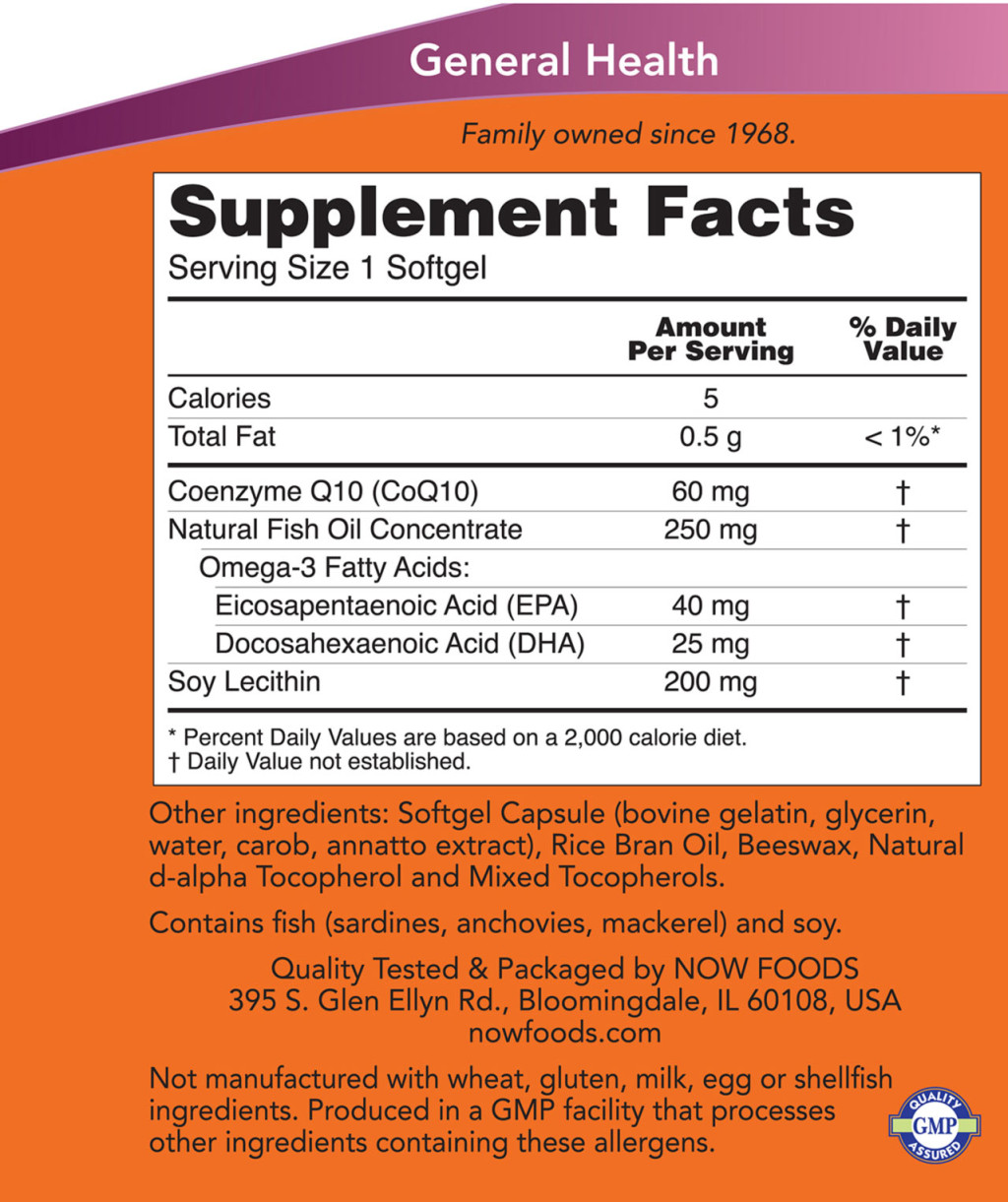 Now Foods Coq10 60 mg With Omega 3 Fish Oil - Q10 Koenzim Omega-3 Halolajjal (60 Lágykapszula)