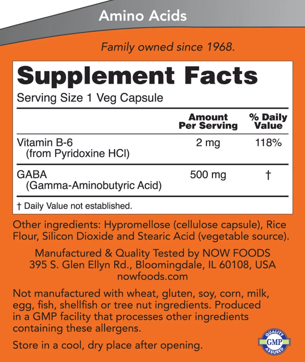 Now Foods Gaba 500 mg - Gamma-amino-vajsav (200 Veg Kapszula)