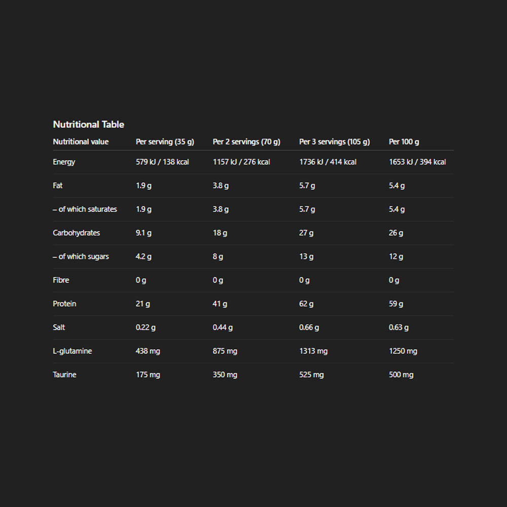 Fogyassz naponta 1-3 adagot - reggeli előtt, étkezések között, edzés után vagy lefekvés előtt. Adj 1 adagot (35 g = 1 adagolókanál) 200 ml vízhez. Elkészítés után azonnal fogyaszd.