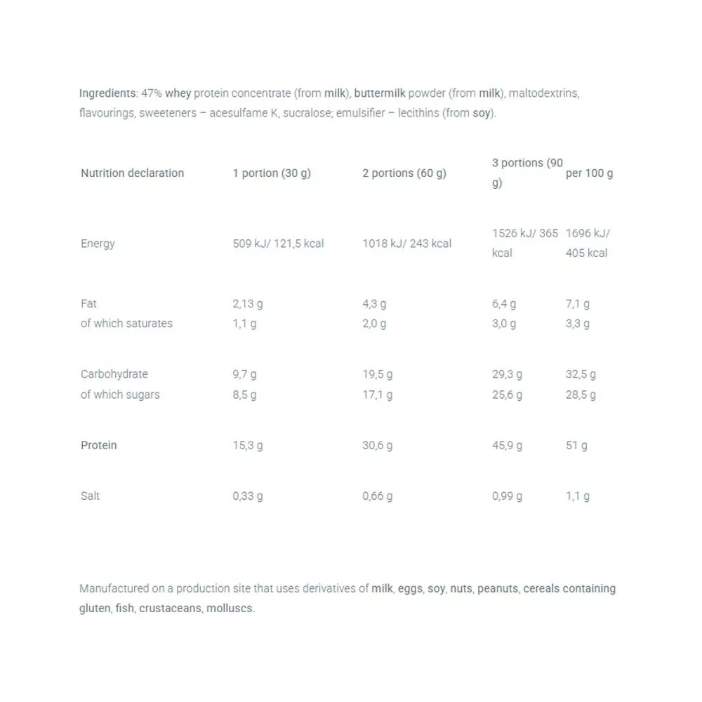 Whey Protein Xplode Powder egy egyedülálló, fehérjében gazdag termék, amelynek nehéz ellenállni. Segítségével gyorsan és egyszerűen készíthetsz finom, sűrű és krémes állagú fehérjeturmixot. Egy adag (30 g) több mint 15 g teljes értékű fehérjét biztosít tejsavófehérje-koncentrátum (WPC) formájában, amely hozzájárul az izomtömeg növekedéséhez és fenntartásához.