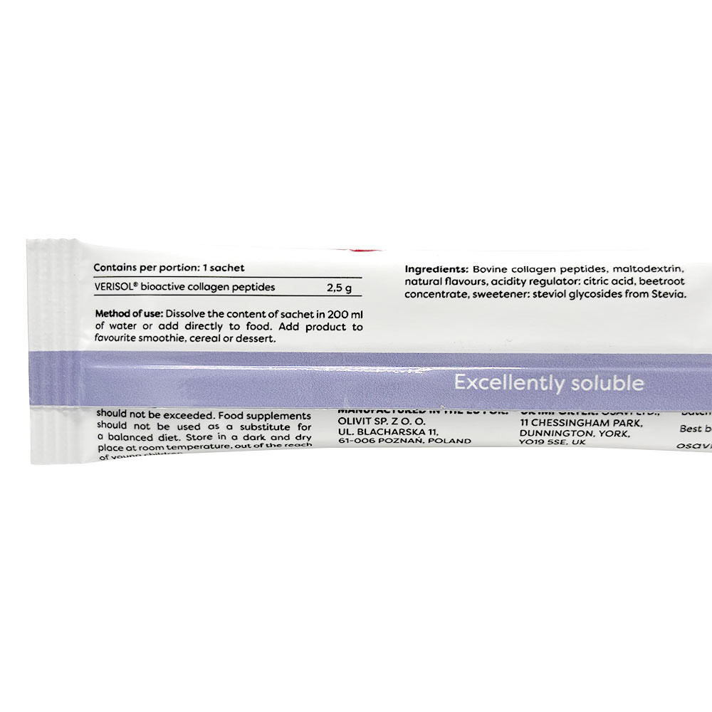 • Szabadalmaztatott és klinikailag tesztelt VERISOL® bioaktív kollagén peptideket tartalmaz