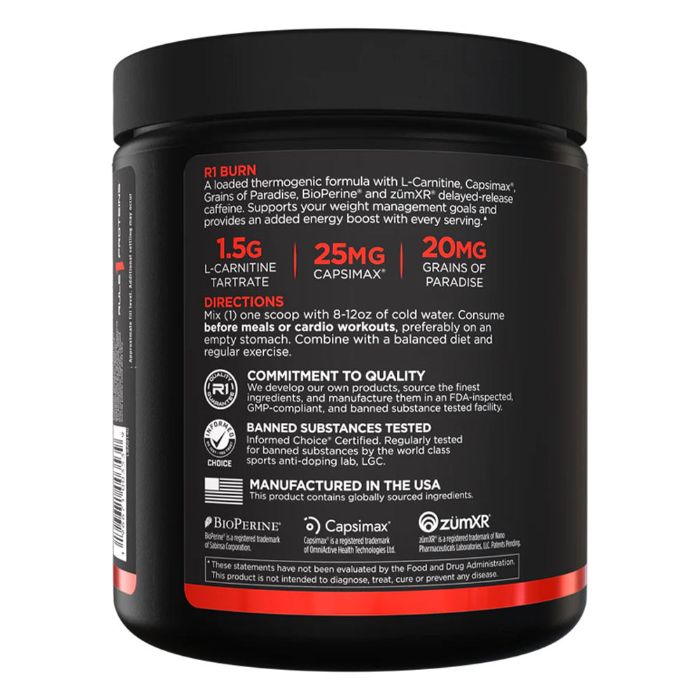 A Burn a termogén összetevők félelmetes keverékét tartalmazza, beleértve a vízmentes, kávébabból, tealevélből, guarana magból és mikrokapszulázott, késleltetett felszabadulású forrásokból származó multikáffein kombinációt. A porok vagy a kapszulák egyetlen adagja körülbelül két csésze erős kávé energiájának megfelelő energiát biztosít.