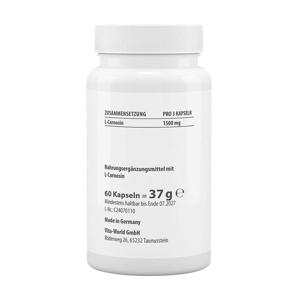 Minden kapszula 500 mg L-karnozint tartalmaz, amely támogatja az izmok és az agy működését