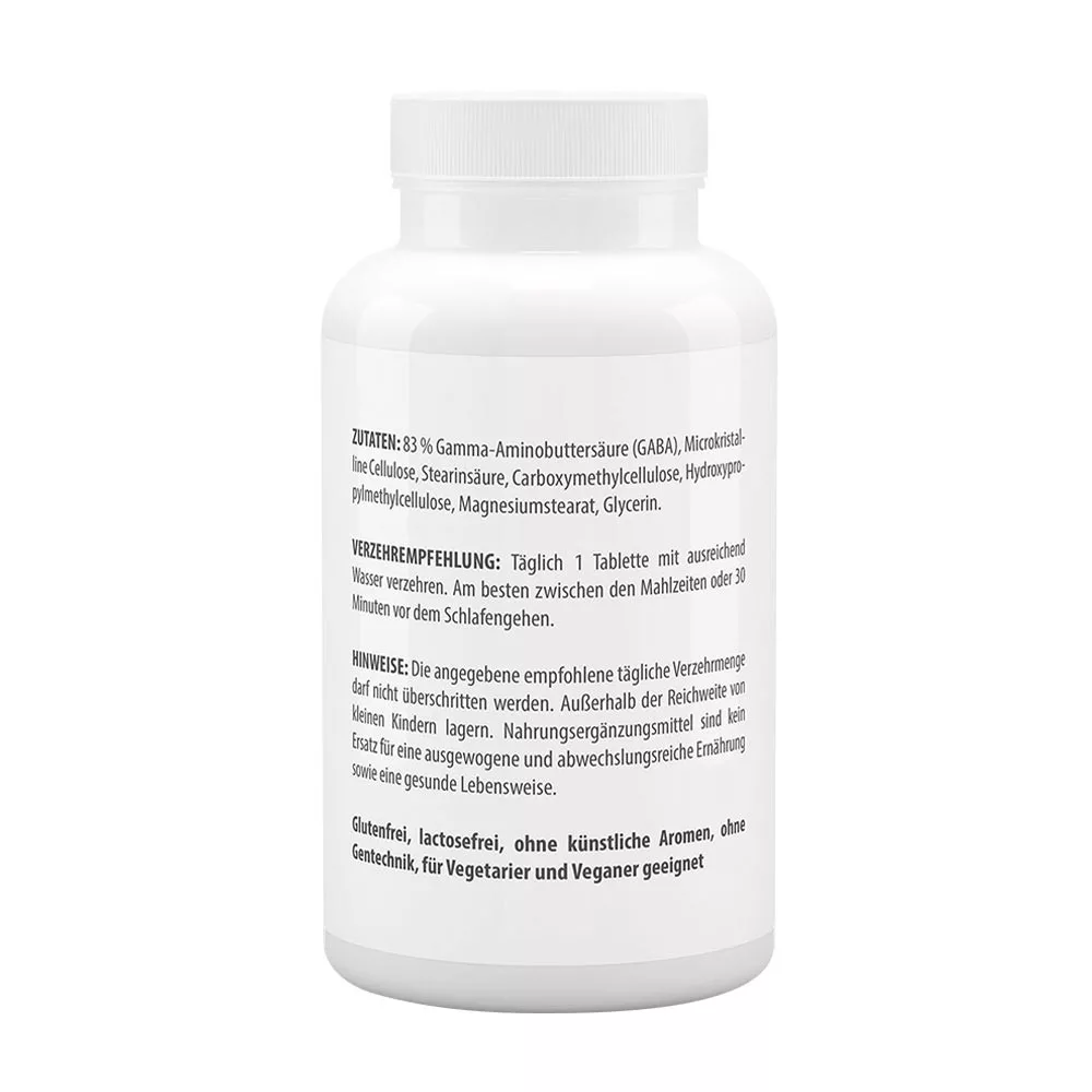 A GABA a nem esszenciális aminosavak közé tartozik, és a szervezet glutaminsavból állítja elő. Különleges funkciója miatt a GABA gyakran áll tudományos kutatások középpontjában, amelyek az idegsejtek aktivitását, a kiegyenlítő mechanizmusokat és a neurotranszmitterek mindennapi életben betöltött szerepét vizsgálják.HASZNÁLAT (1 adag = 1 tabletta)